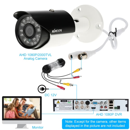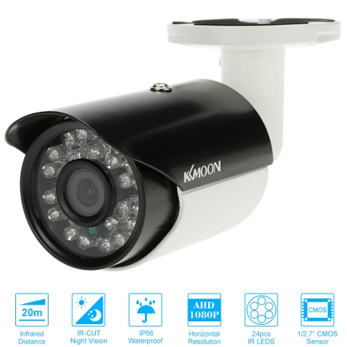 KKmoon® AHD 1080P 2000TVL Megapixels CCTV Security Surveillance Outdoor Indoor Bullet Camera support weatherproof IR-CUT Filter Night View Plug and Play 24 LEDs